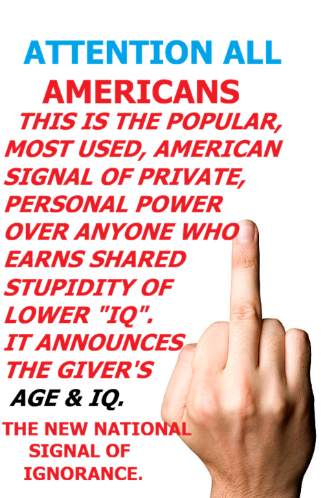 So, after experiencing so many of those ONE FINGER JOBS. I decided. Rather than doing the same thing back at whoever gave me that ONE FINGER. I would tell myself to just smile, thank them if they could hear me, and ask...”IS THAT YOUR “IQ” or YOUR MENTAL AGE? But there are better things you can say instead of the “IQ” question. Thank them and smile as you say...”SO YOU THINK I AM NUMBER 1?”